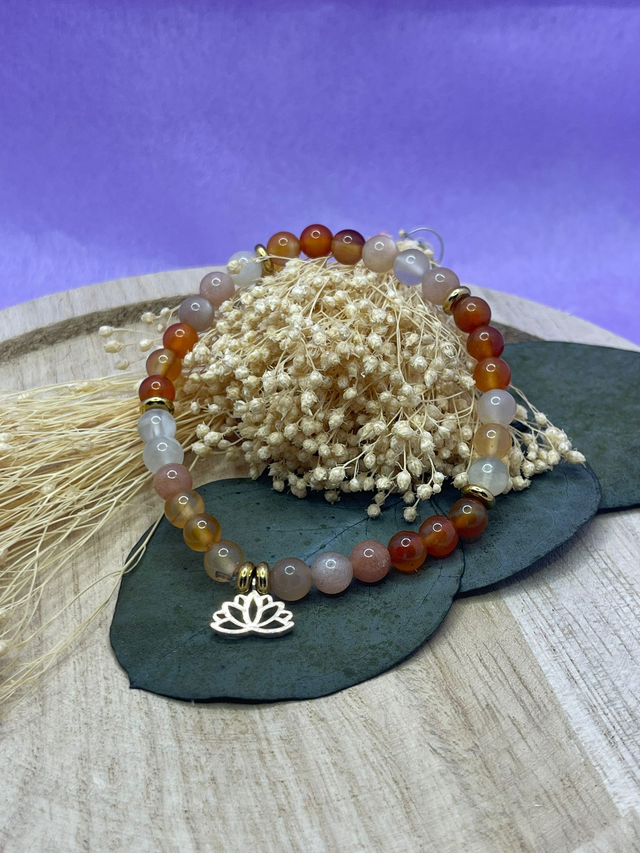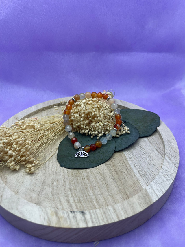 Bracelet énergétique en pierres naturelles composé de cornaline et de pierre de lune.